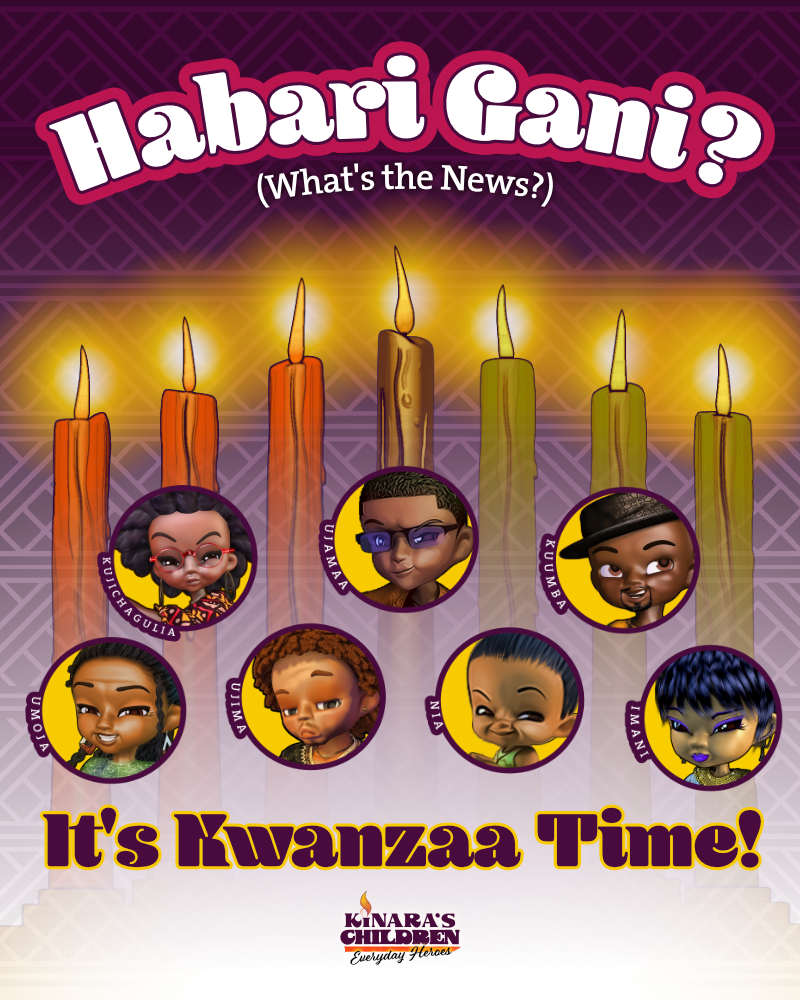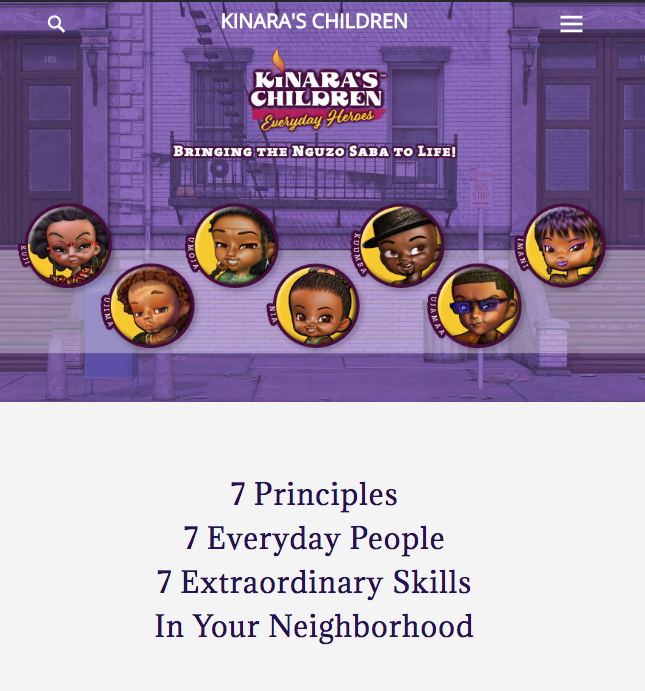 The Kinara’s Children project is a website aimed at informing the community about Kwanzaa, its 7 principles, and African American history and culture through the lives of 7 cartoon characters who exhibit the traits found in Kwanzaa’s Nguzo Saba.
